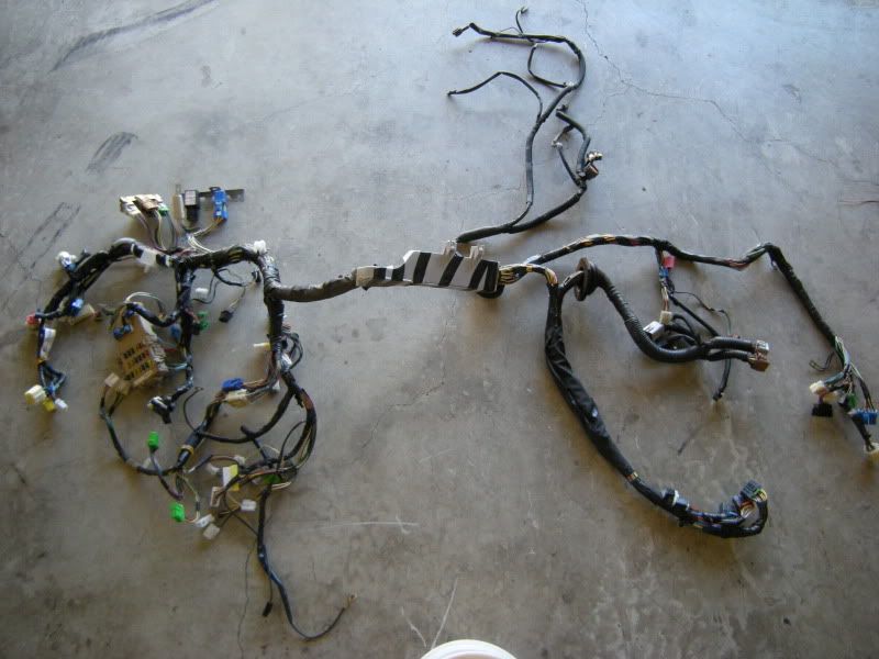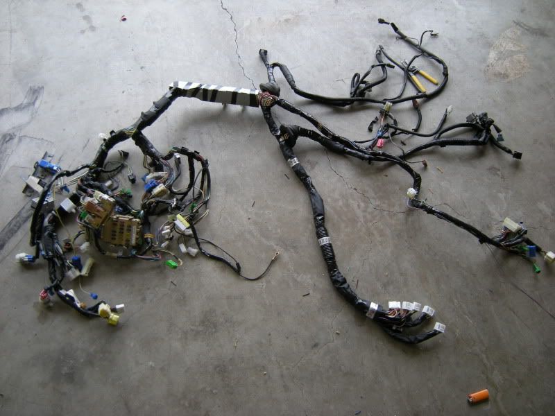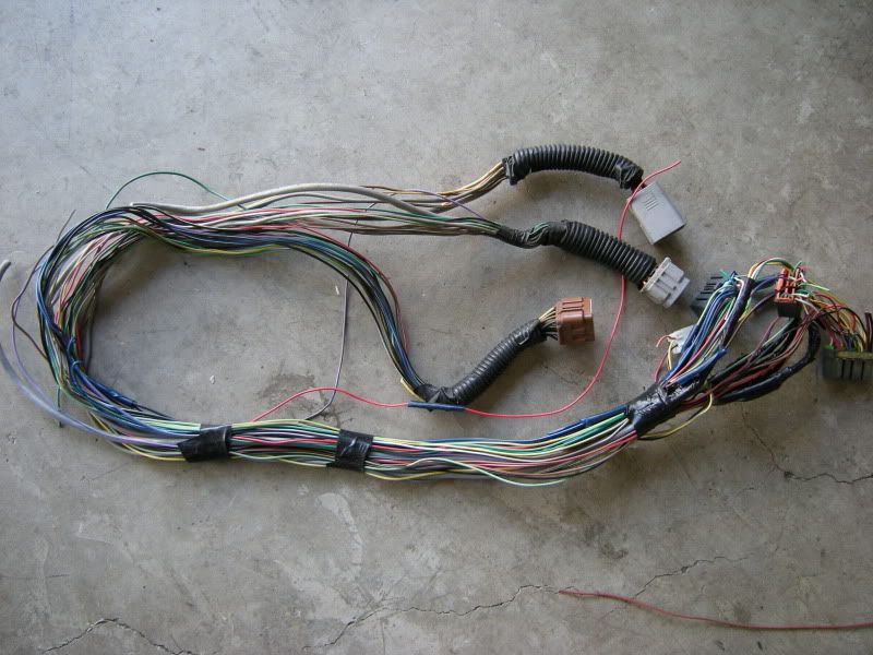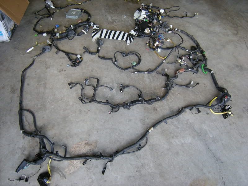 This Picture is the entire WRX harness. The harness extends to the rear of the car but this is just the bulkhead harness (harness that runs behind the dash) and the front harness (Harness the runs down the fenders and under the fans). Notice the fuse box and ECU. This is a few as if you just popped the hood and are looking down on the harness.