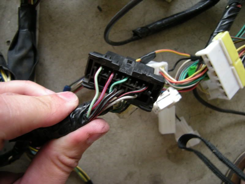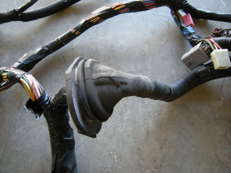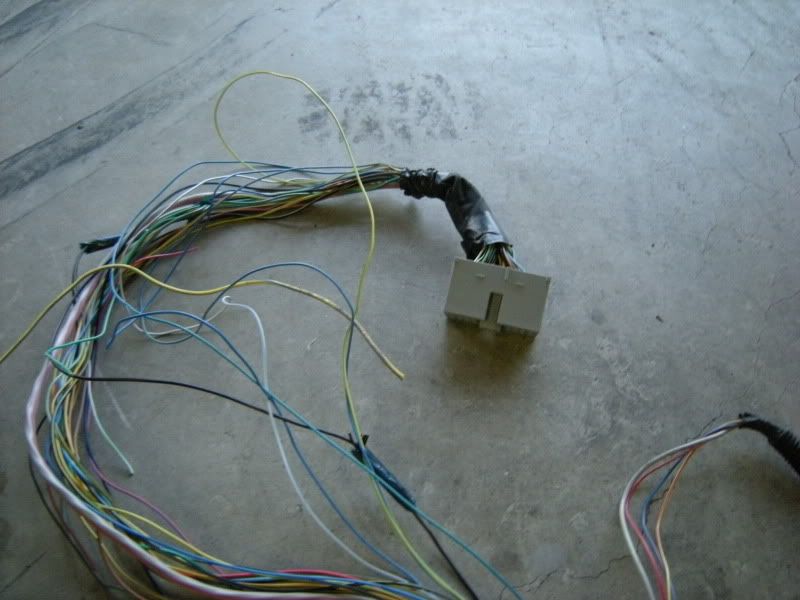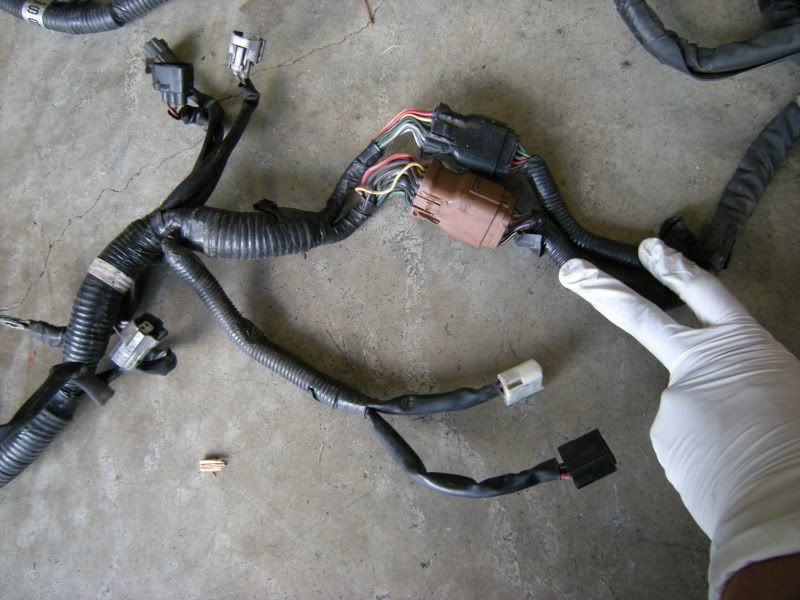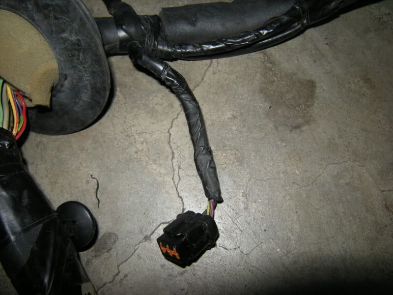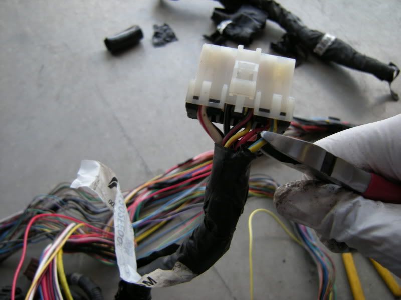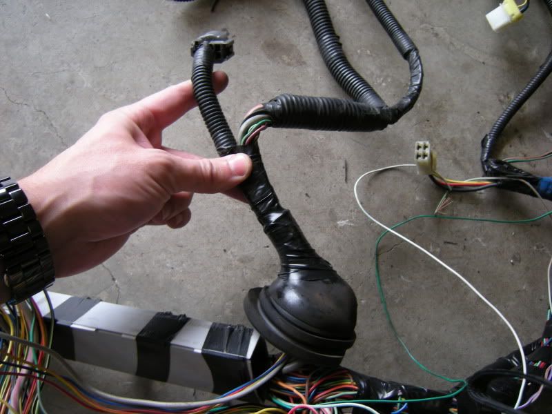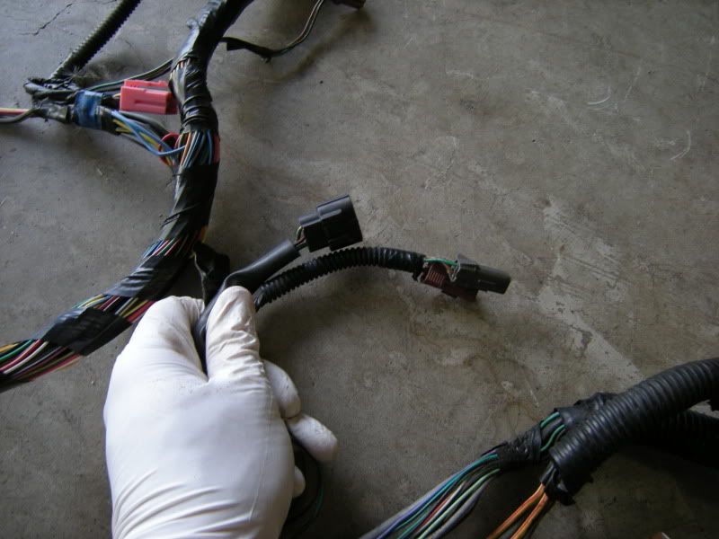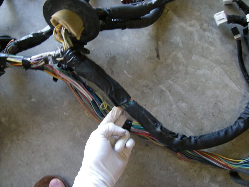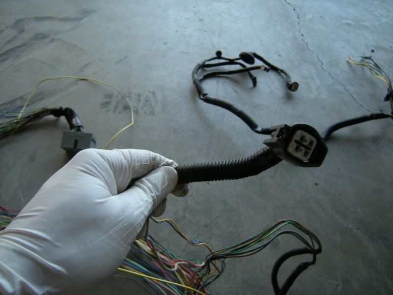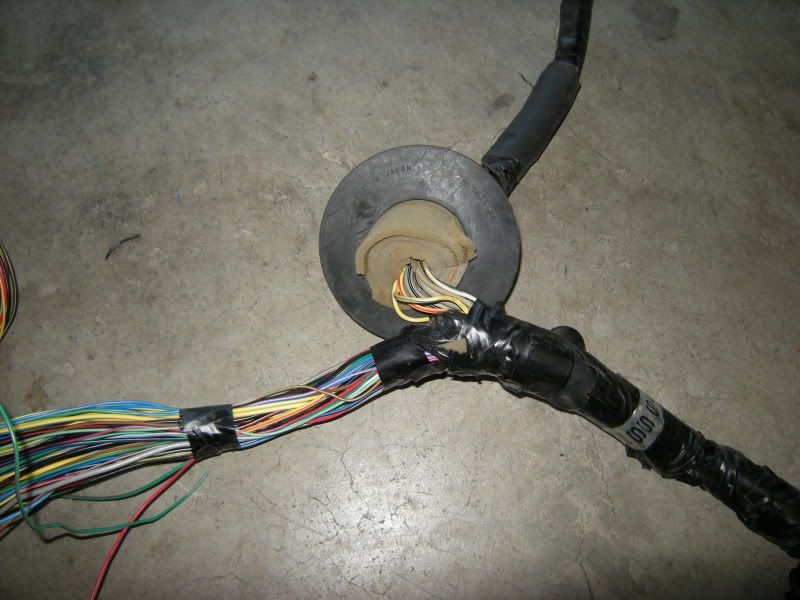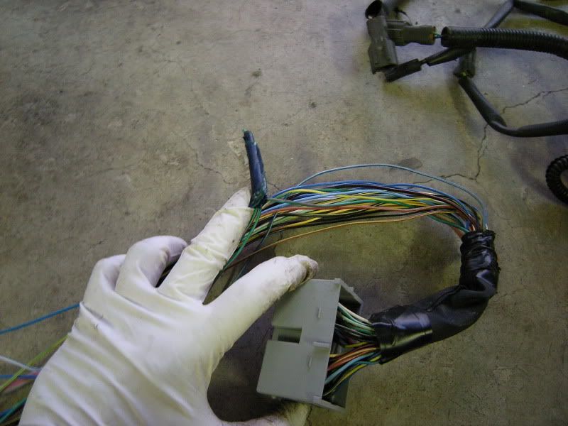 In the center of the bulkhead harness you will find this grommet. There are only a few wires that matter in it but this connection goes to the tranny for neutral switch, backup lights, and rear o2 sensor. Depending on what you are swapping, you may need all or just one of these plugs. This will be discussed when we start cutting.