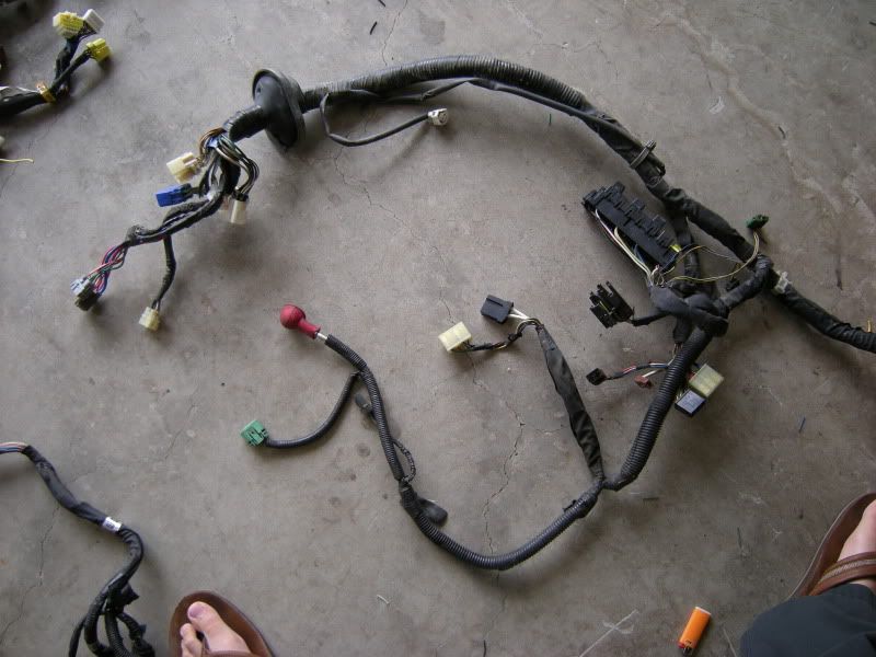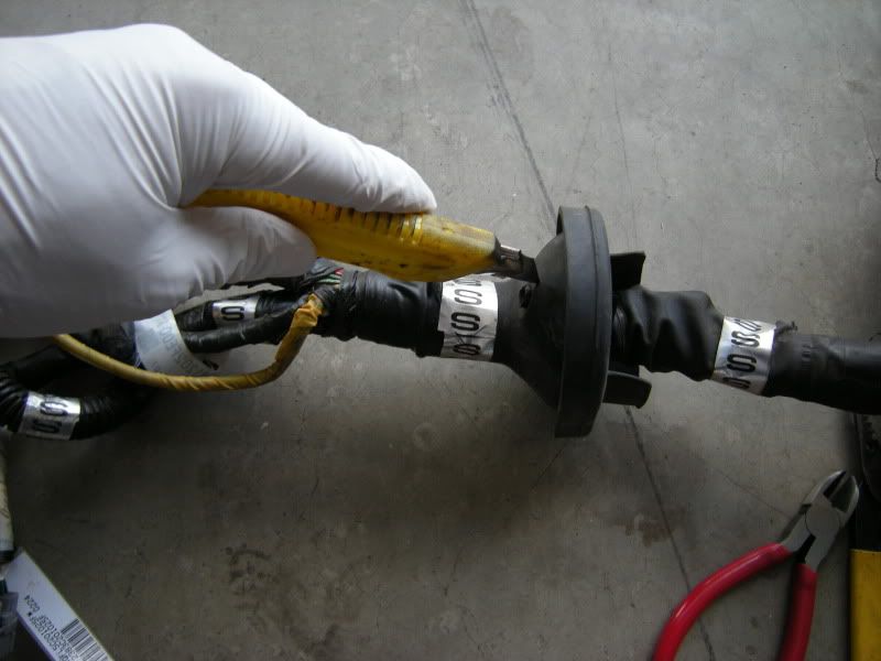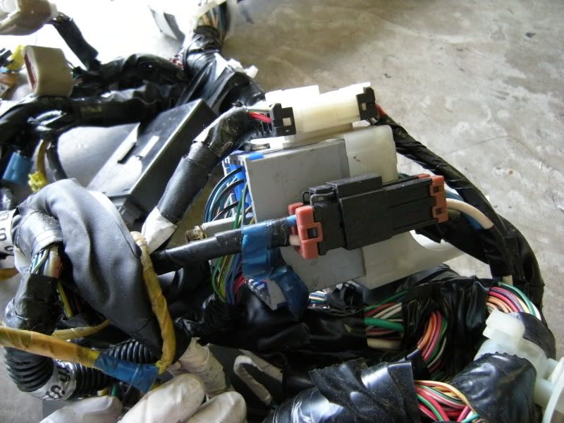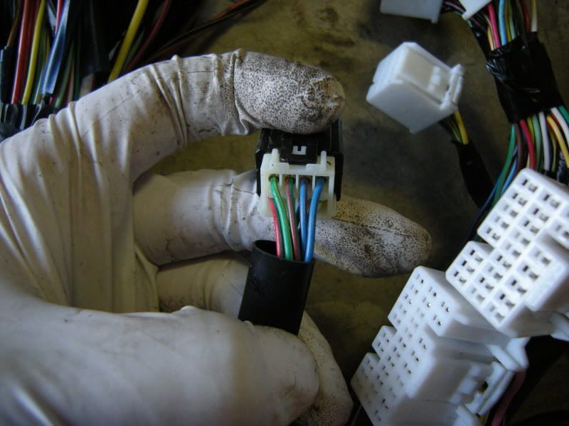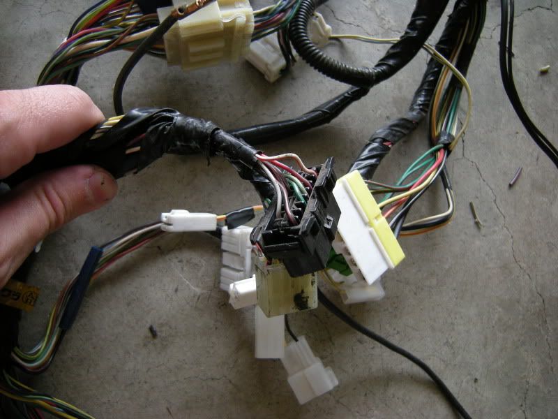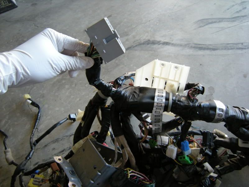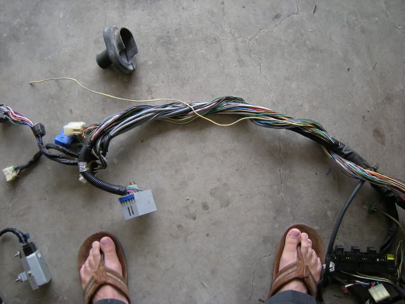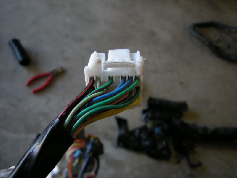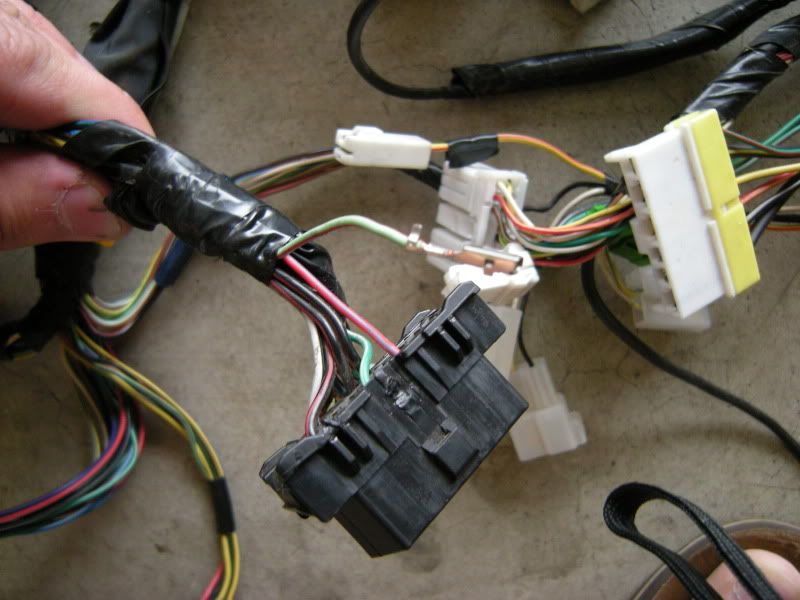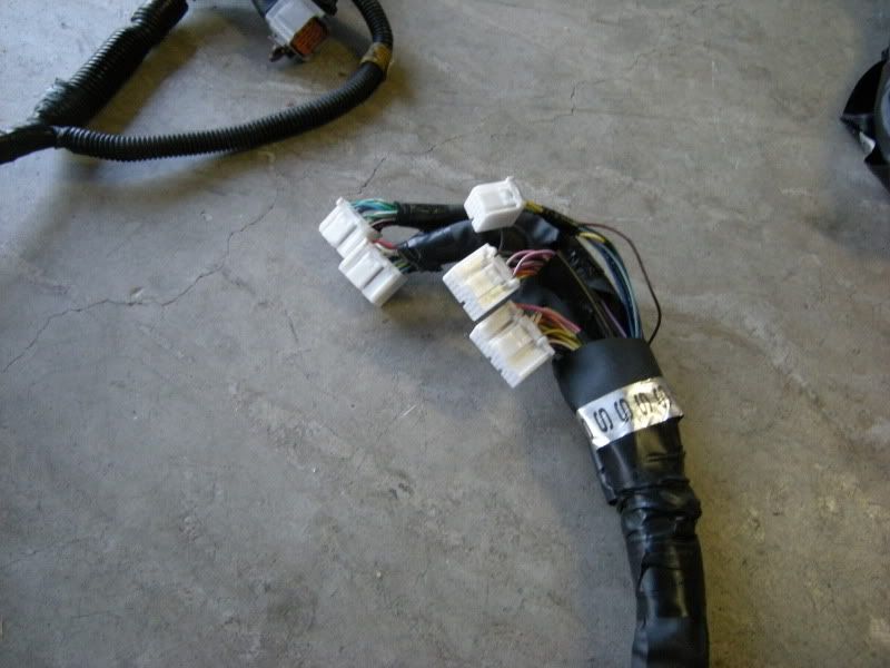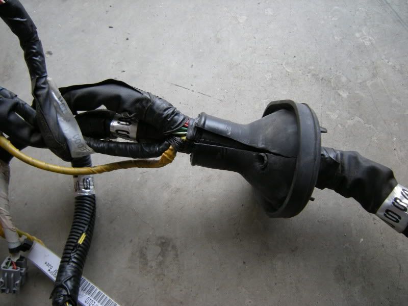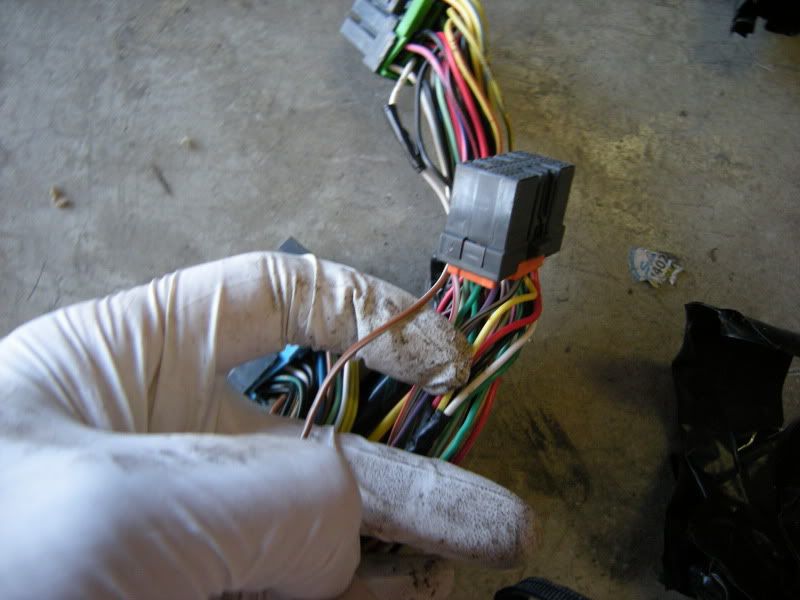 In the center of the bulkhead harness you will find this grommet. There are only a few wires that matter in it but this connection goes to the tranny for neutral switch, backup lights, and rear o2 sensor. Depending on what you are swapping, you may need all or just one of these plugs. This will be discussed when we start cutting.