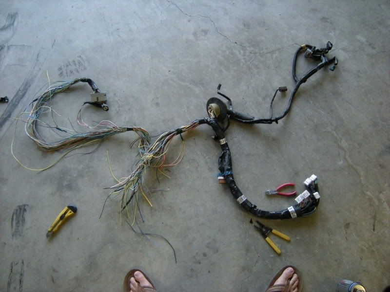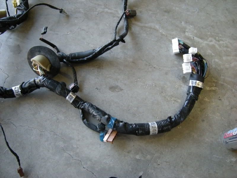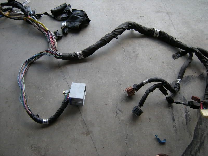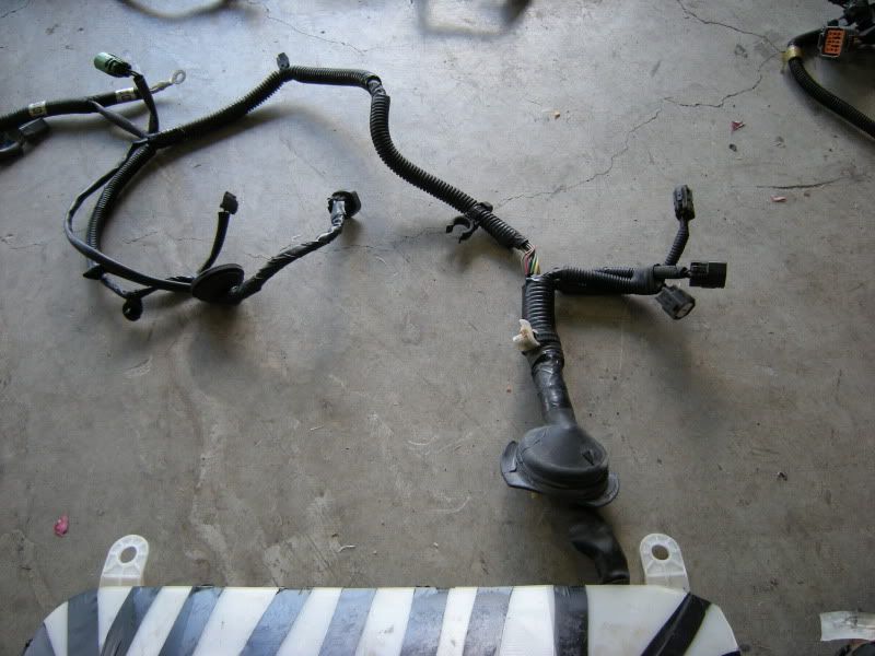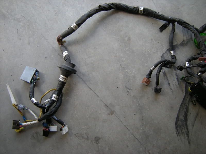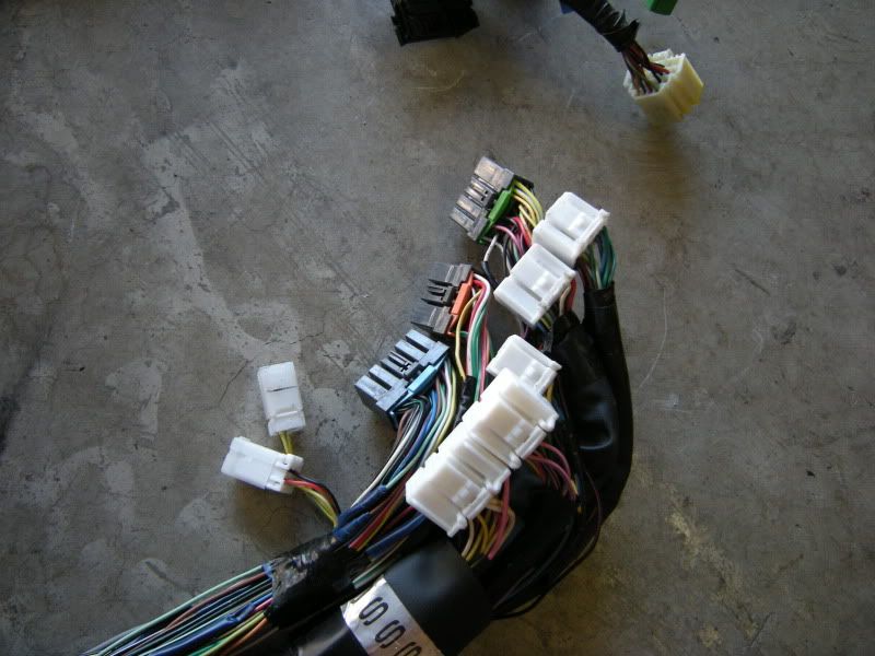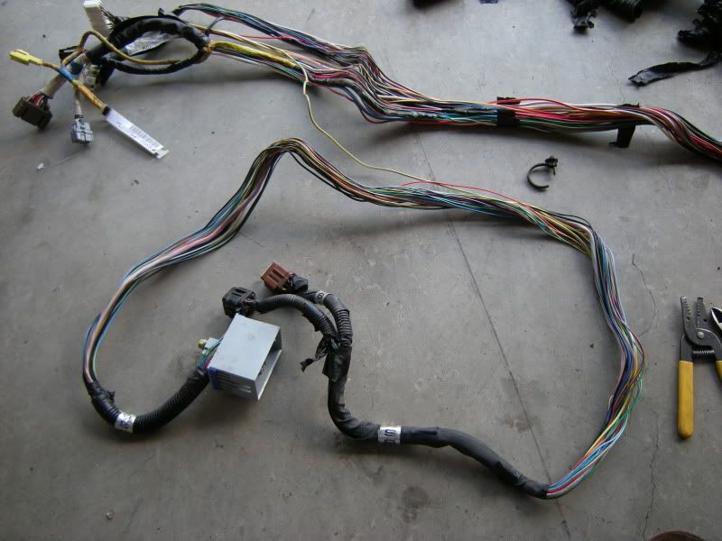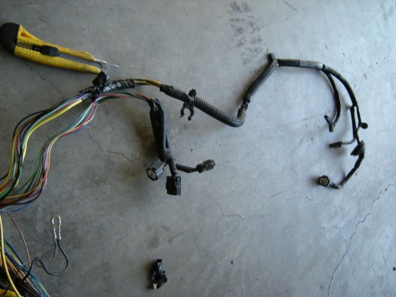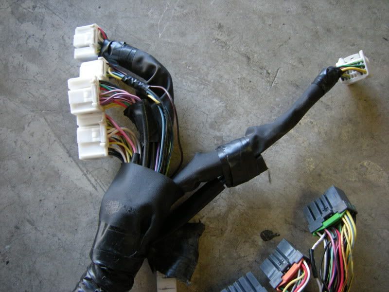 Now, that you know that parts we need we can start the fun part, cutting. I suggest starting with the front harness. Notice the two plugs right and the SMJ left. Those are the only two connections that matter out of the entire front harness.