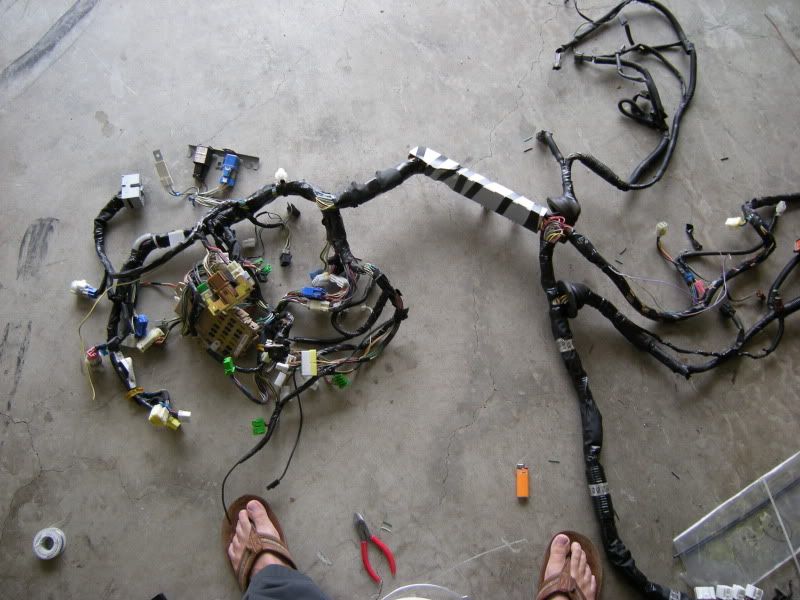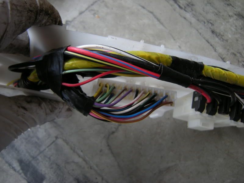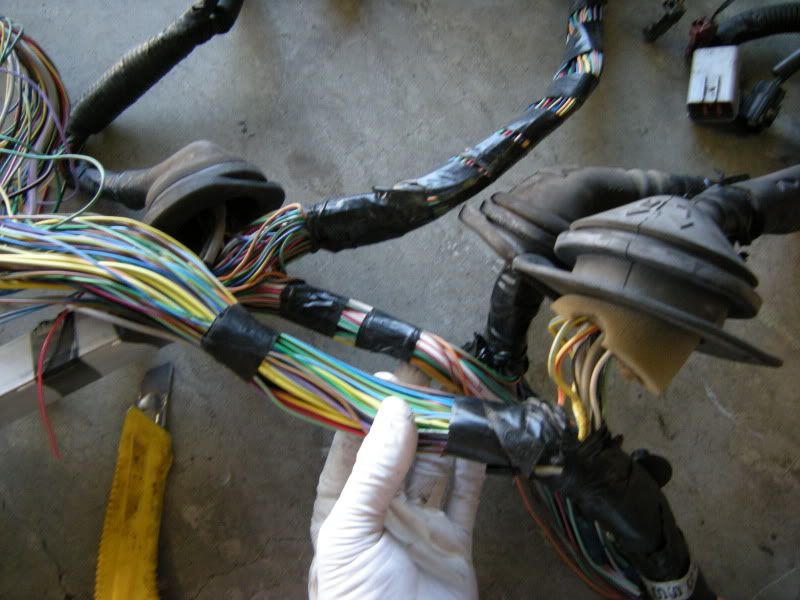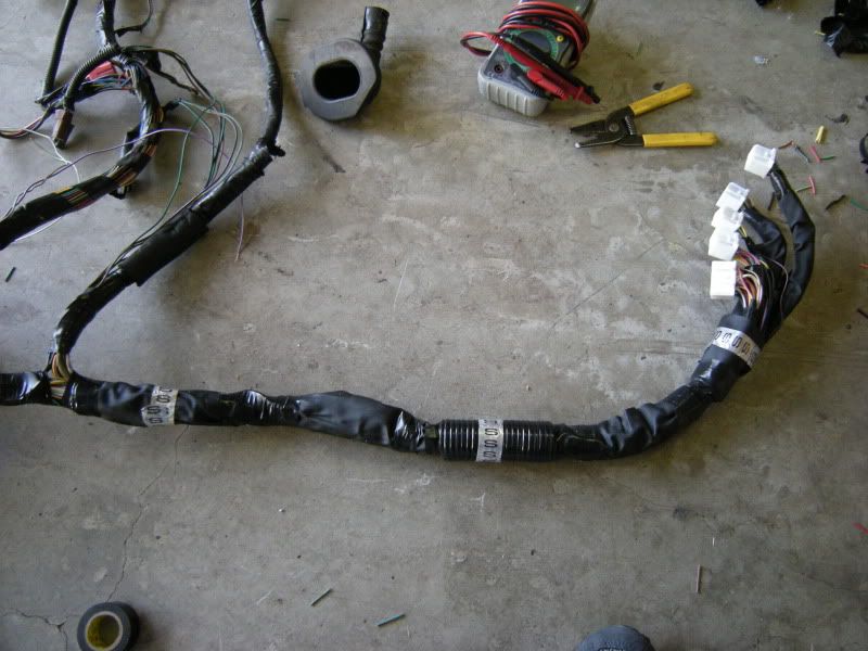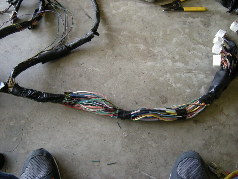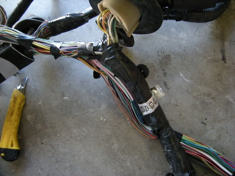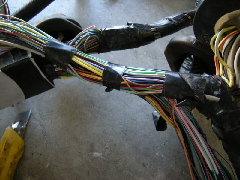 You are not quite done but you can start wrapping the harness back up to clean up the wiring and get a good idea what is left. Basically it is the reverse of how you took it apart.