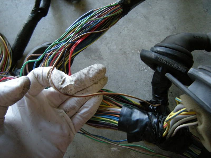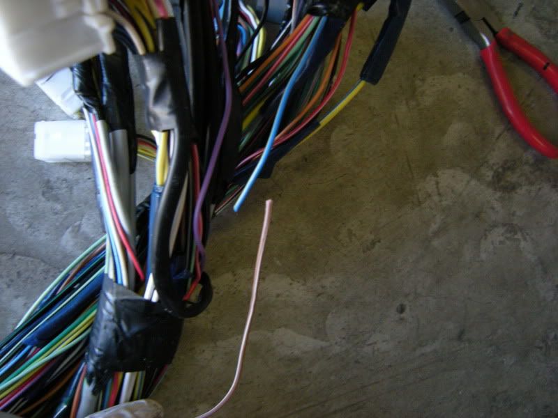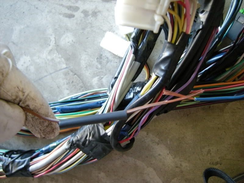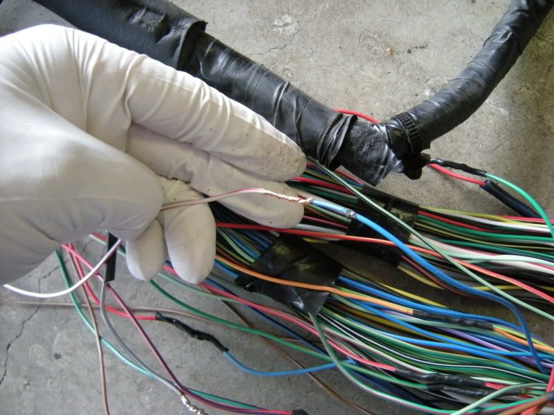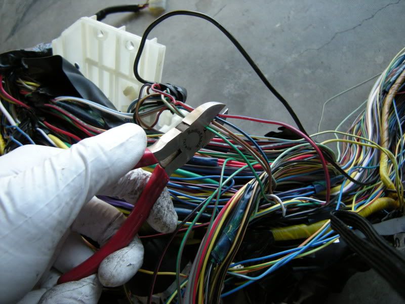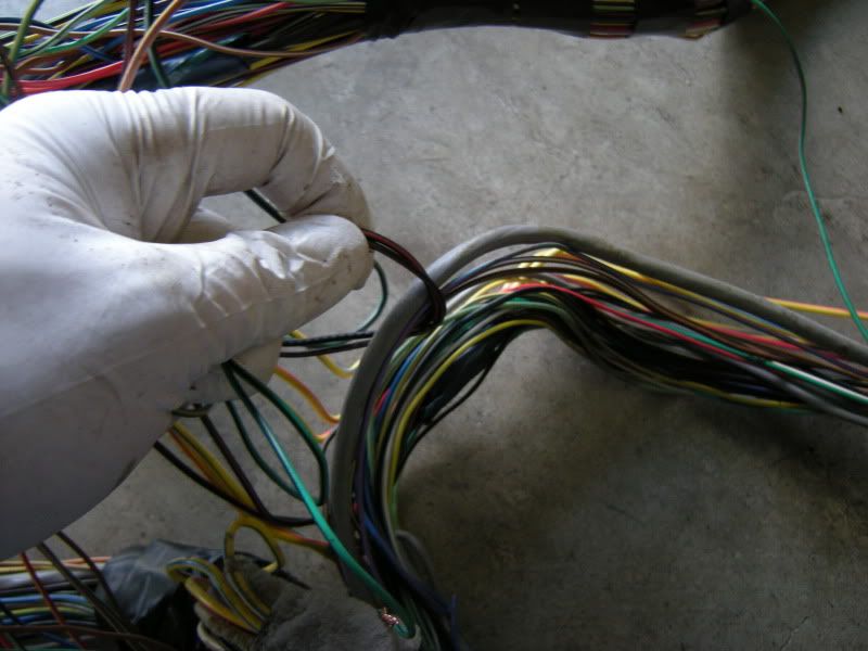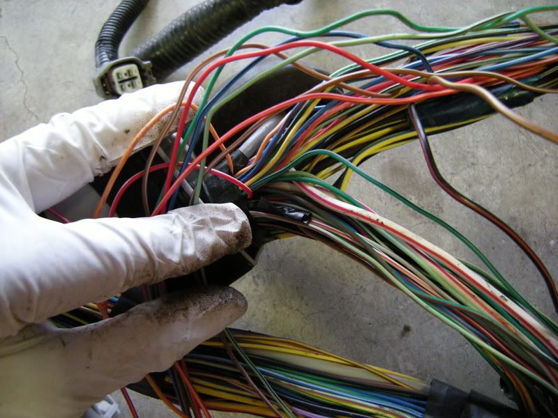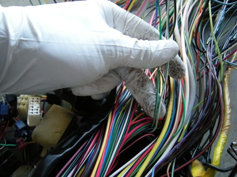 On the RS harness you see several wires that lead right towards the rear of the car and a bunch that lead left towards the fuse panel, gauges, etc. You can start pulling on wires at random but I generally start with the rear wires and then move to the others. It really doesn’t matter where you start.