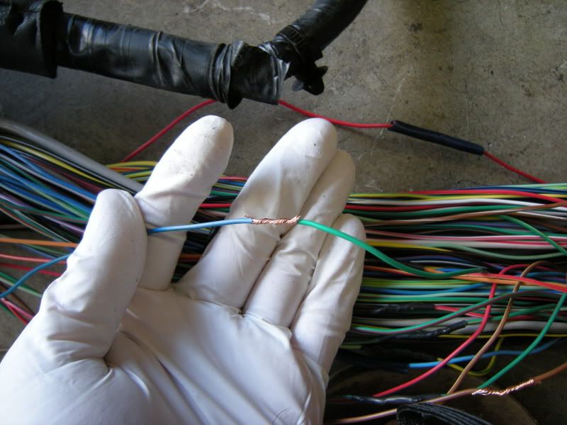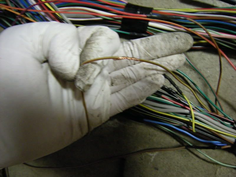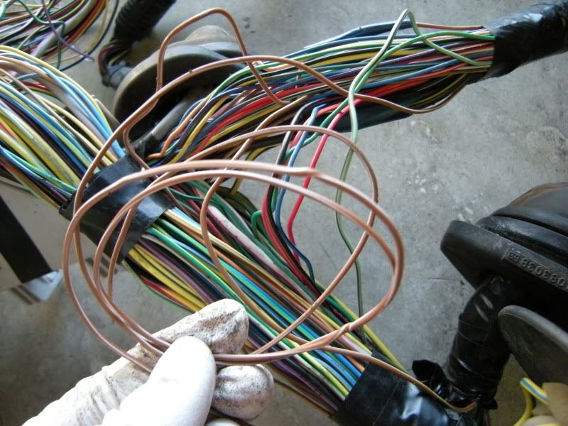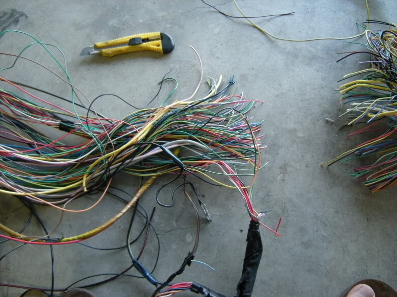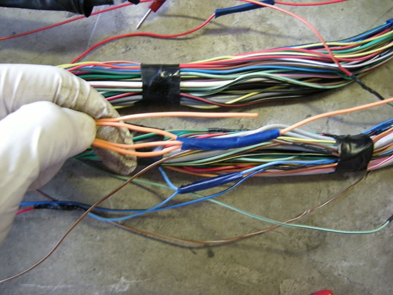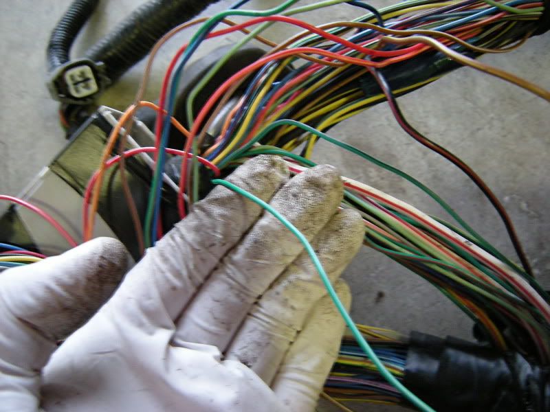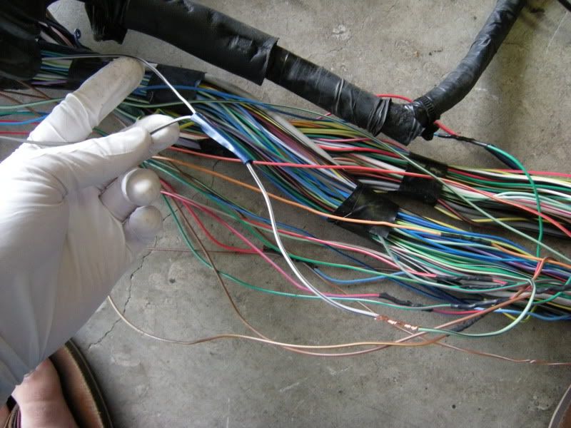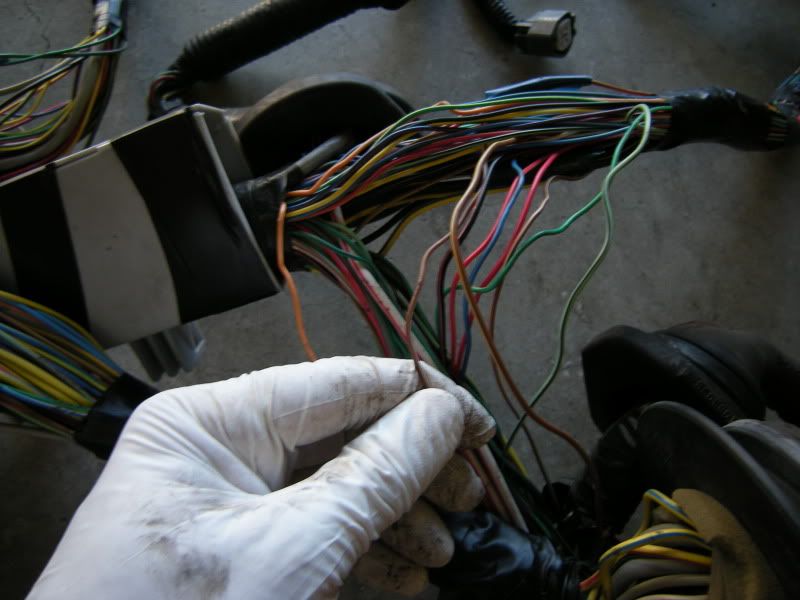On the RS harness you see several wires that lead right towards the rear of the car and a bunch that lead left towards the fuse panel, gauges, etc. You can start pulling on wires at random but I generally start with the rear wires and then move to the others. It really doesn’t matter where you start.