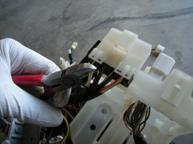 At this point I cut off all the unneeded wires that lead to the left of the last picture. This includes the fuse box. This clears out a lot and makes it easier to see what you are doing. Just cut, don’t think about where they go. I assure you that they are not needed. Once you are in this mind set this goes much faster.