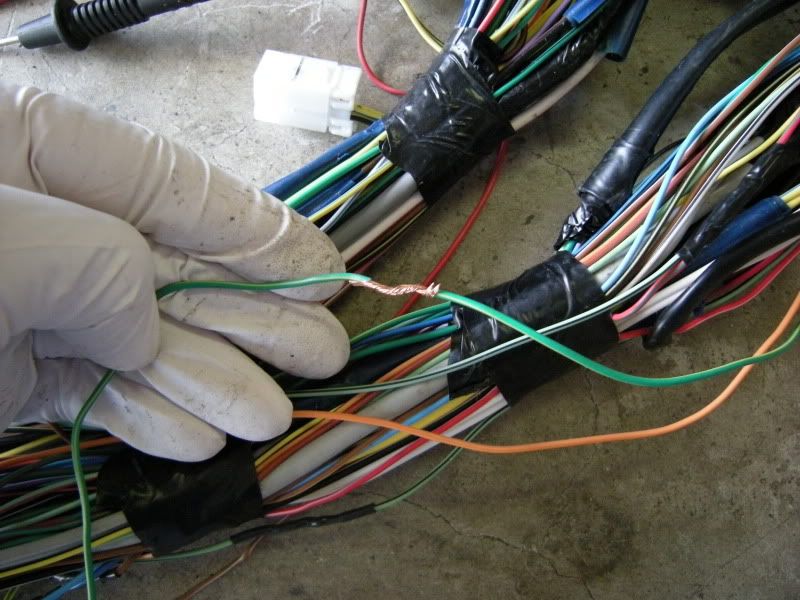As you start to unwrap you will notice common connections like this ground. If the wire is not going the direction you want then cut it. This will be hard for you at first but becomes easier as we move on. Again we are traveling toward the ecu so wires leading away are useless. Do I know where these go? Yes, but you are just wasting your time tracing them. They don’t feed what you want so cut them.
