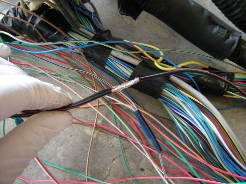 I start at the SMJ and work toward the engine plugs but at this point it really doesn’t matter. A razor blade makes short work of this. If you are trying to unwind the tape you are wasting your time. Nothing is reused so don’t worry about it.